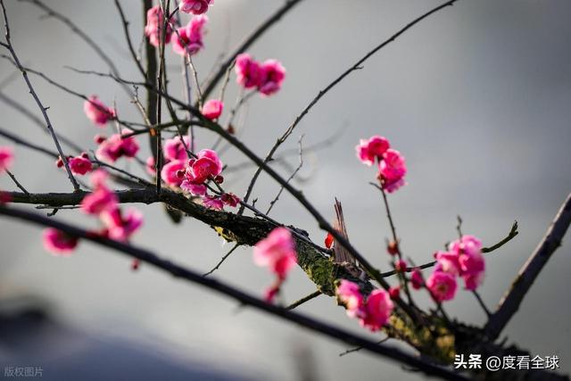 走近细看,每一朵梅花都美得恰到好处。有的含苞待放,小小的花苞裹着淡绿色的花萼,像一个个害羞的小姑娘,迟迟不肯露出脸庞;有的半开半合,几片花瓣微微舒展,露出里面淡黄色的花蕊,娇俏可爱;有的肆意盛开,花瓣层层叠叠,尽情舒展,将自己的美丽毫无保留地展现出来。指尖轻轻触碰到花瓣,软软糯糯,带着清晨的露珠,冰凉清爽,一不小心,便有落英簌簌飘落,落在掌心,落在肩头,落在青石板路上,铺成了一条粉色的花径,让人忍不住心生怜爱。