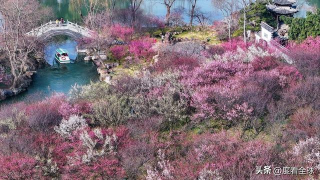 2026年2月15日,腊月廿八,年味未散,春已先至。扬州瘦西湖的清晨还裹着几分微凉的水汽,“湖上梅林”却已打破冬日的静谧,上万株春梅挣脱枝桠的束缚,渐次绽放,将整片湖面晕染成最动人的江南画卷。朋友圈、抖音、小红书里,这片藏在扬城深处的梅林彻底刷屏,有人驱车百里奔赴,有人晨起赶在人流前赴约,只为捕捉这转瞬即逝的早春盛景——粉白的花瓣缀满枝头,淡紫的花苞含羞待放,风过处,暗香裹挟着湖水的温润,漫过亭台,漫过小径,也漫进了每一个赏梅人的心底。