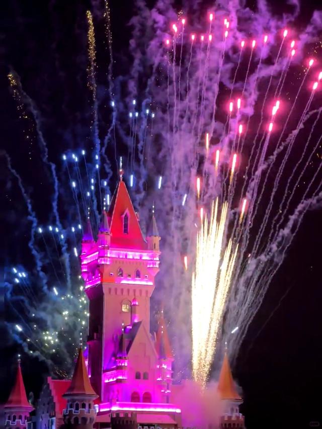 城堡烟花秀在夜空绽放的瞬间,真是新春独有的浪漫;百余名NPC甜蜜互动,说不定走着走着就能邂逅心动名场面;英歌贺岁等特色演艺轮番登场,热闹劲儿直接拉满。