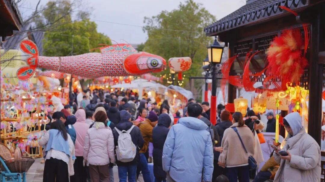 行至水畔,非遗鱼灯临水而立,光影摇荡,皆是江南独有的温柔。驻足合影,不必刻意构图,随手一拍,便是一幅年味十足的水乡画卷。