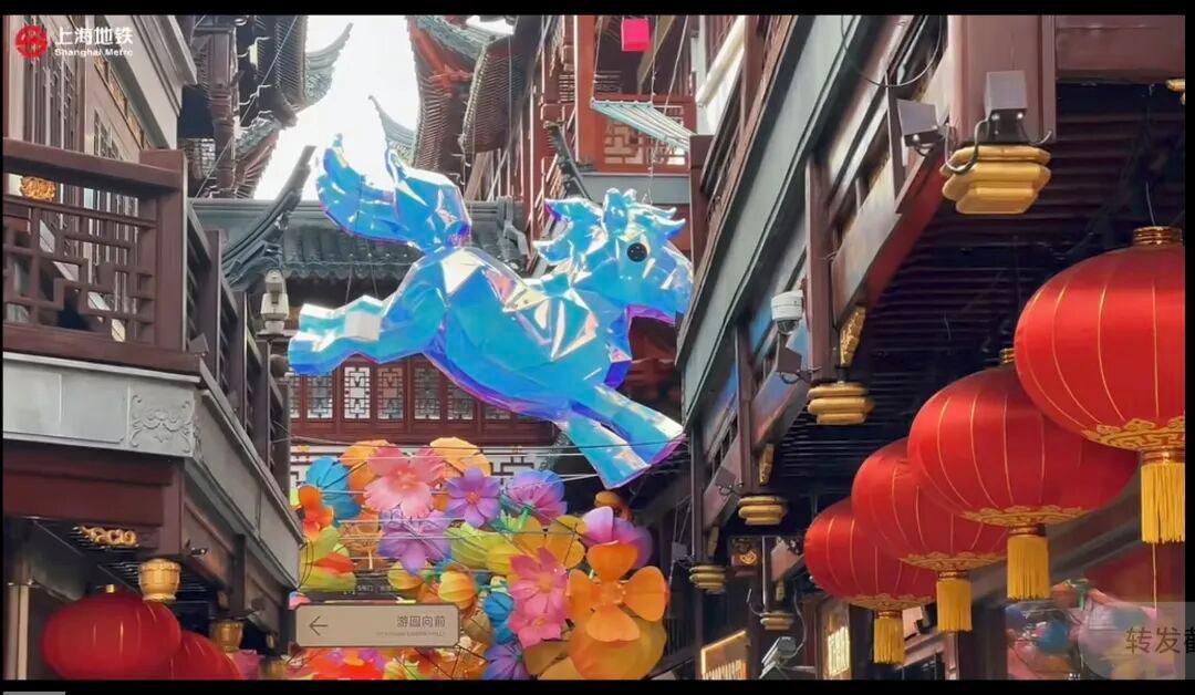 过年去哪儿?魔都年味最浓郁的地方在哪里?搭乘地铁到10/14号线豫园站,从7号口出站,马路对面一眼就能看到上海豫园的牌楼。春节期间,海派年味盛宴正在这里上演。在豫园老街,全长百余米的仿古街道上,南翔馒头店、松鹤楼等老字号美食令人垂涎,充分展现了老城厢的特色。如果是看灯会,最推荐的是九曲桥区域,这里化身为“马跃星河,逐梦苍穹”的幻境,《山海经》中的神兽与二十八星宿灯组璀璨夺目。在黄金广场,三层巨型走马灯以传统榫卯工艺打造,融合数字光影,循环展示年俗画卷,是必打卡的景点。提醒:夜间豫园灯会实行全员预约制,无票无法入园。建议提前线上购票预约。
