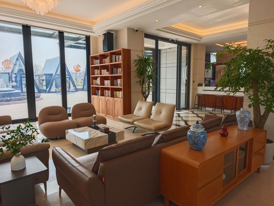 3层高的主楼,一楼是公共会客厅,可以看书、喝茶小憩,也可以在晚上围坐一堂听听音乐。二楼三楼是客房,公共区域有欧式书架和大餐桌,配上大玻璃,可以享受景观早餐。客房内更是精心设计,层高4米,绝不压抑,床品织数高,希望给住客“不输星级酒店的睡眠体验”。