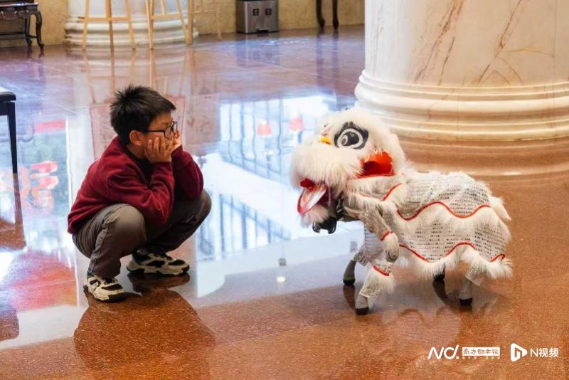 广东迎宾馆新上岗的机器狗,广东迎宾馆以“请到广东过大年”为主题打造“住、食、玩、礼”一站式新春团圆目的地,开展“穿越千年·古风贺春”沉浸式活动,一线员工换装汉服提供服务,宾客亦可免费租借汉服旗袍旅拍,紧扣“岭南年味活动”“古装沉浸”“温情服务”三大核心。值得一提的是,今年宾馆特别加入机器狗表演环节,大受宾客欢迎,大家纷纷驻足互动拍照,可爱的机器狗将在现场进行快闪跳舞展示,为新春氛围注入满满科技感,彰显新时代、新技术带来的全新体验。