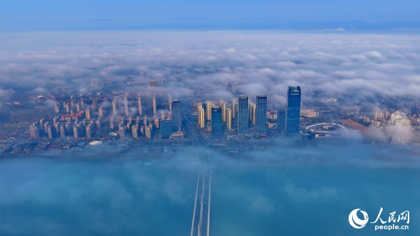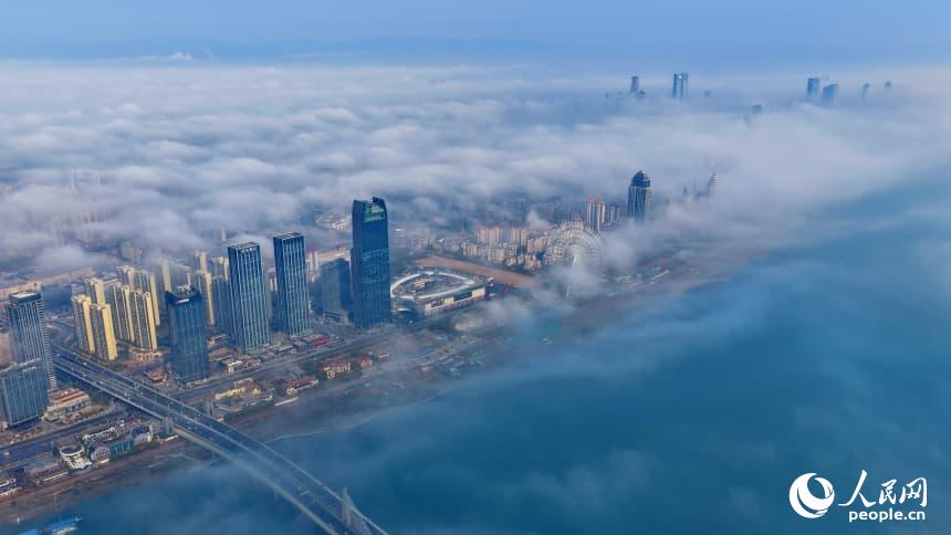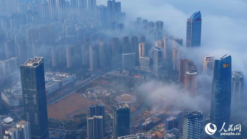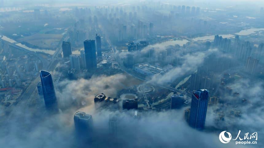 人民网南昌2月17日电 (记者朱海鹏)2月15日,江西省南昌市,赣江两岸的红谷滩区和西湖区云雾缭绕,城市建筑在晨雾中若隐若现,宛如仙境。