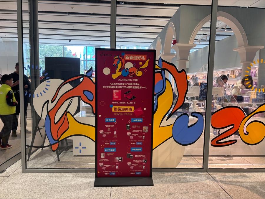 惊喜不止于馆内。不久前,浦东美术馆文创快闪店入驻南京西路商圈的“南西·海上驿”,为期三个月。现场,超过200款人气周边亮相,不仅有“炸毛梵高”玩偶、旋转金属冰箱贴等“爆款”返场,还推出限定联名款水桶包、笔记本,仅在驿站线下售卖。2月13日至23日,文创店推出限时满赠活动,线上或线下单笔消费满188元,即可获赠2026建筑纸雕周历。此外,每日限量发售的100套新春艺术福袋,集结往期人气文创与新展限定周边,带来“专属惊喜”。