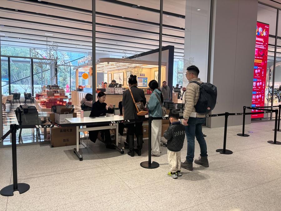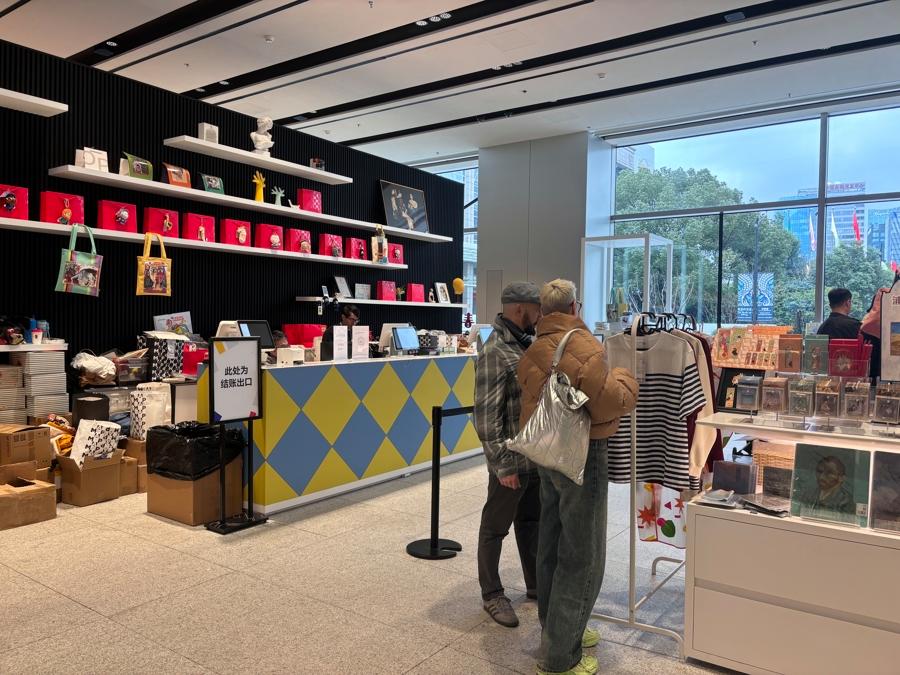 除夕中午,浦东美术馆文创店,外国观众正在挑选商品。阮佳雯 摄