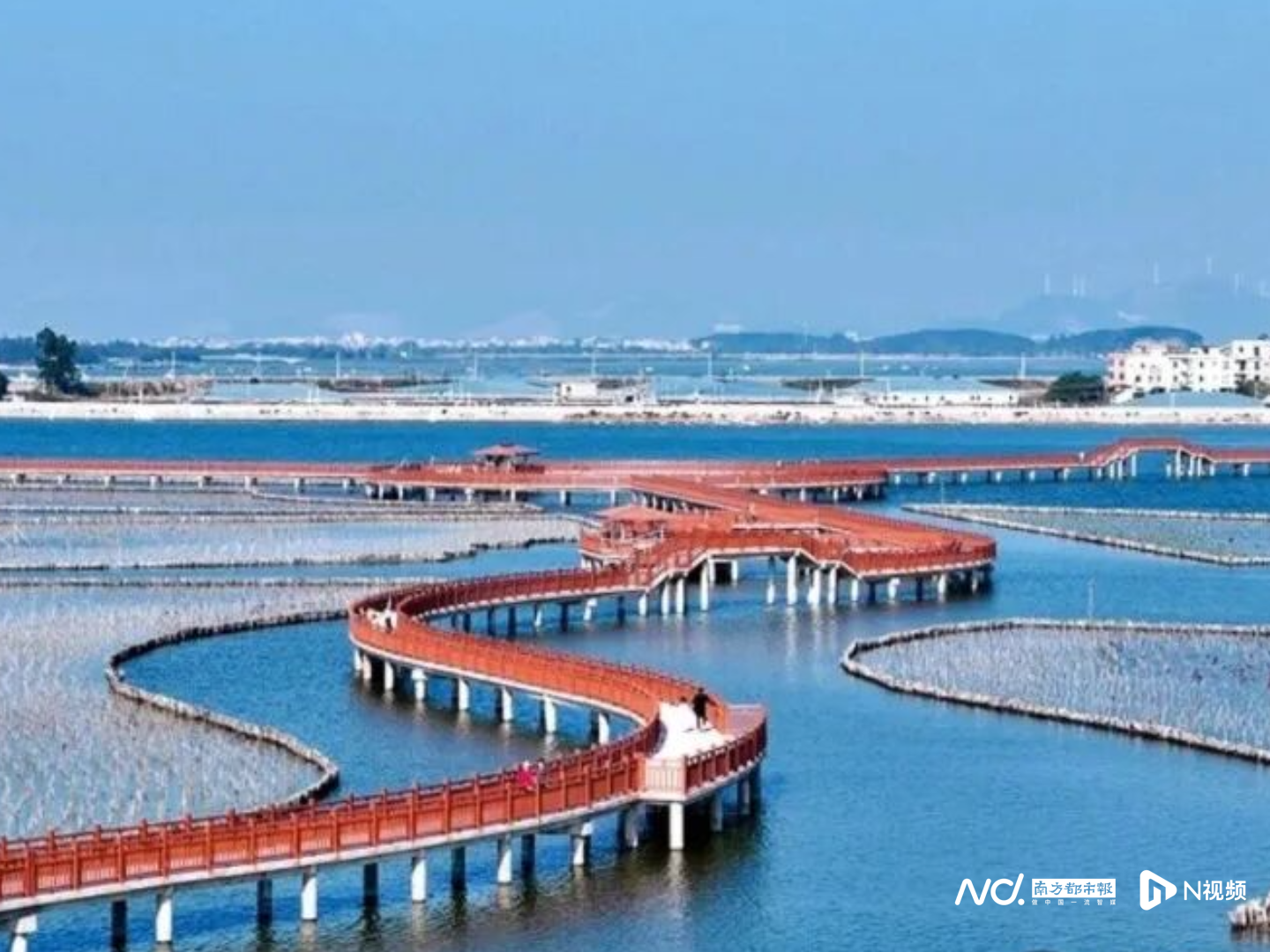 漫步海仔湖栈道上,感受渔村风情。