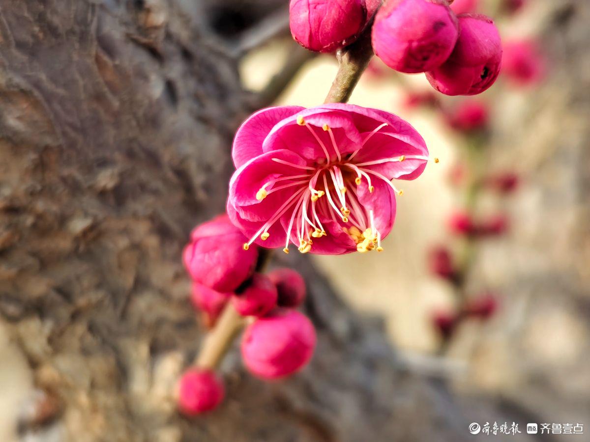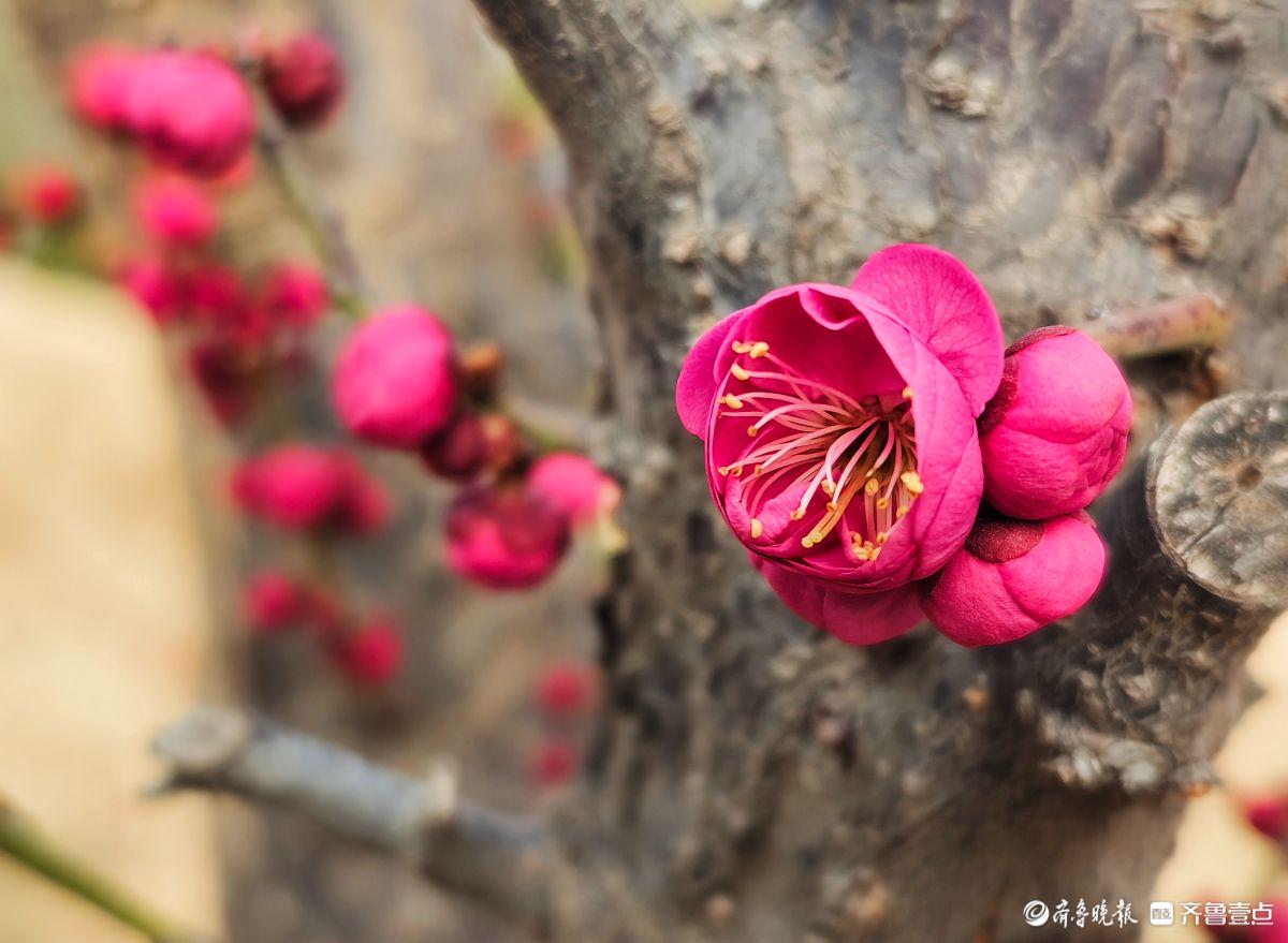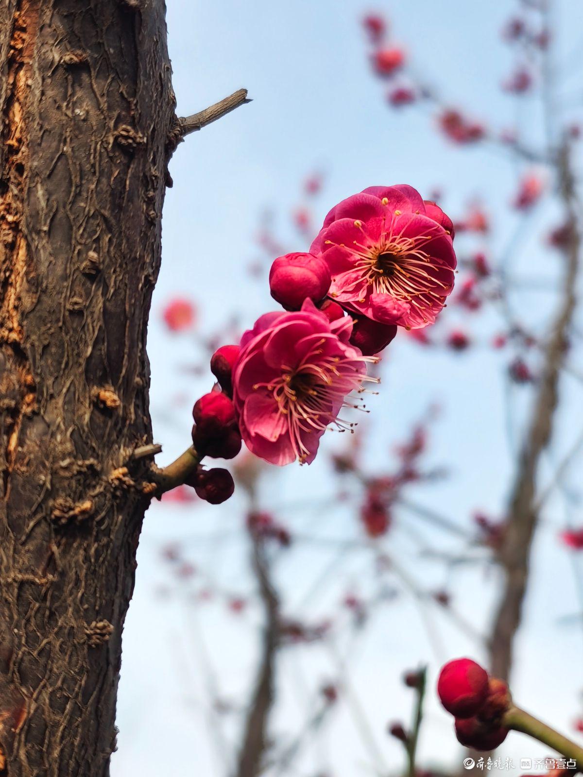 2月14日,新春温度攀升,园中的红梅竞相绽放,一片热闹景象,好像在迎接马年的到来。 高军 摄