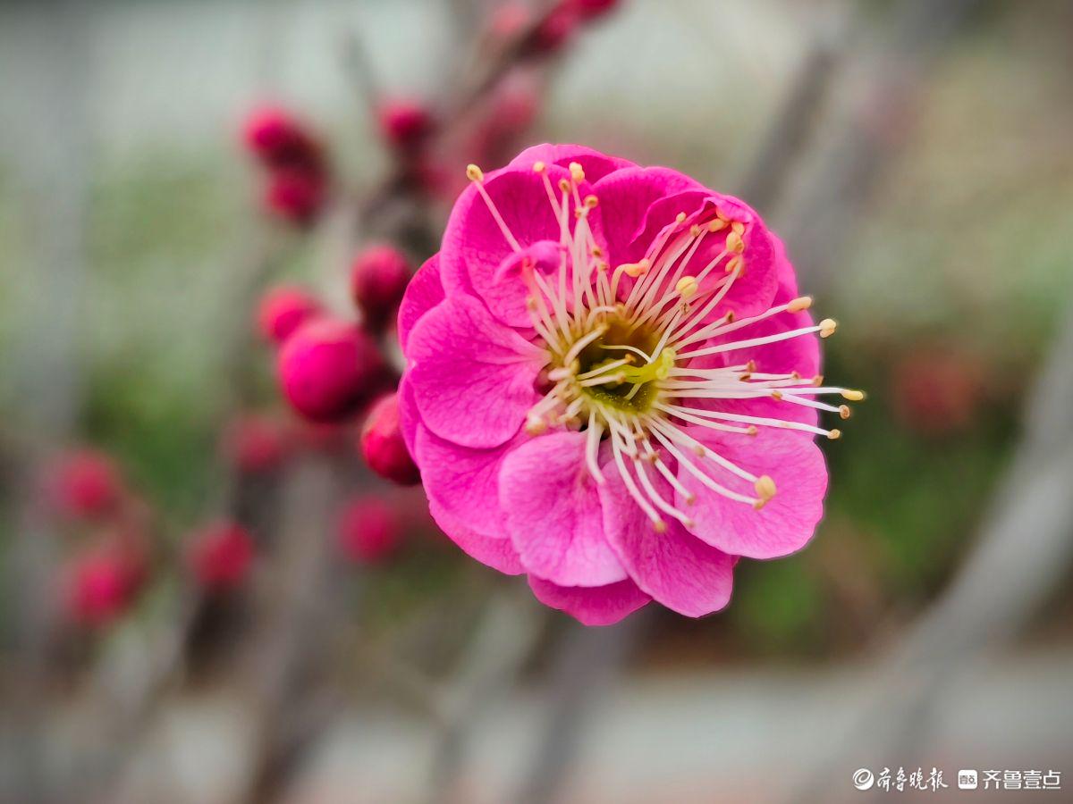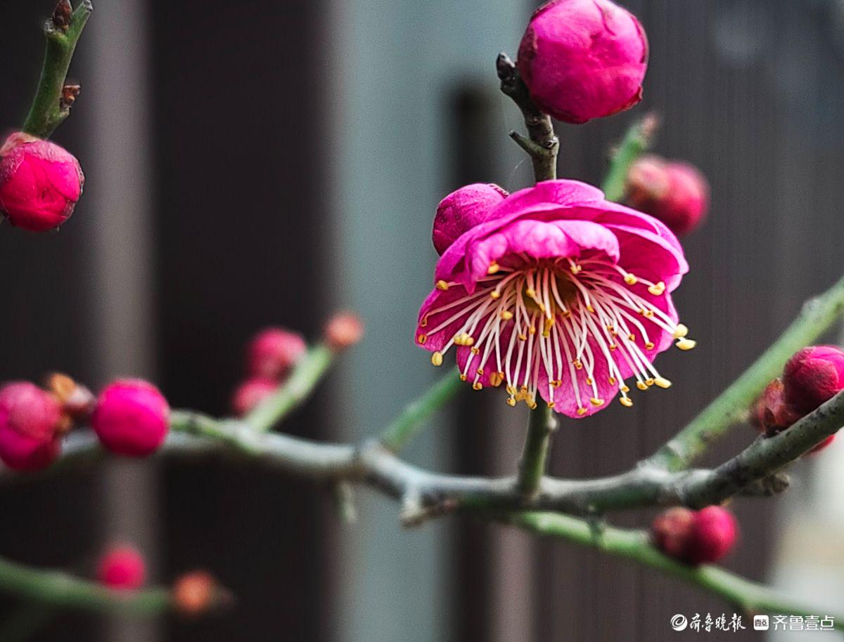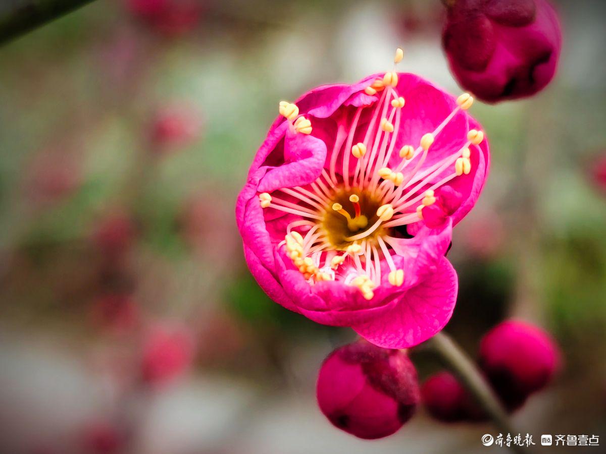 2月14日,新春温度攀升,园中的红梅竞相绽放,一片热闹景象,好像在迎接马年的到来。 高军 摄