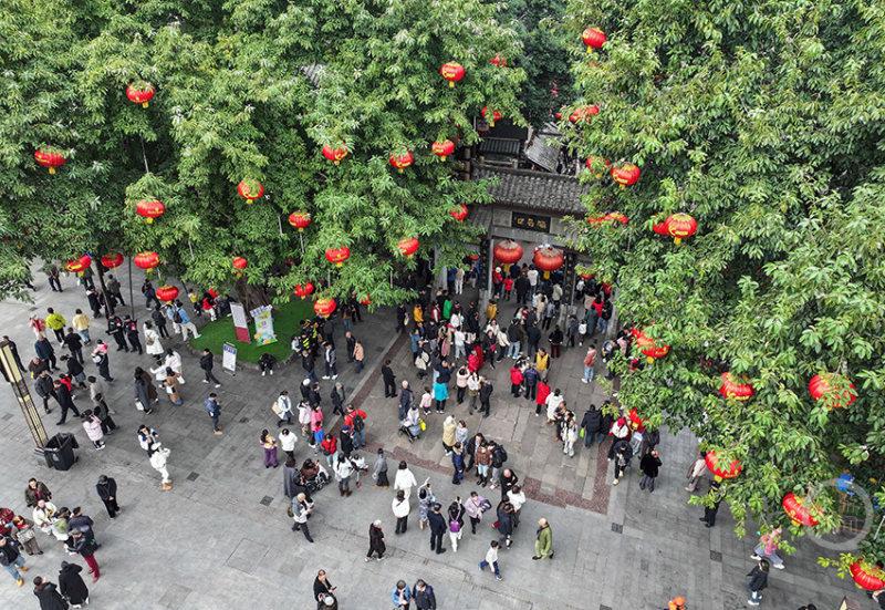 2月17日是大年初一,重庆磁器口古镇迎来一波客流高峰,不少游客借着春节假期,来到古镇品年味、赏年俗。
