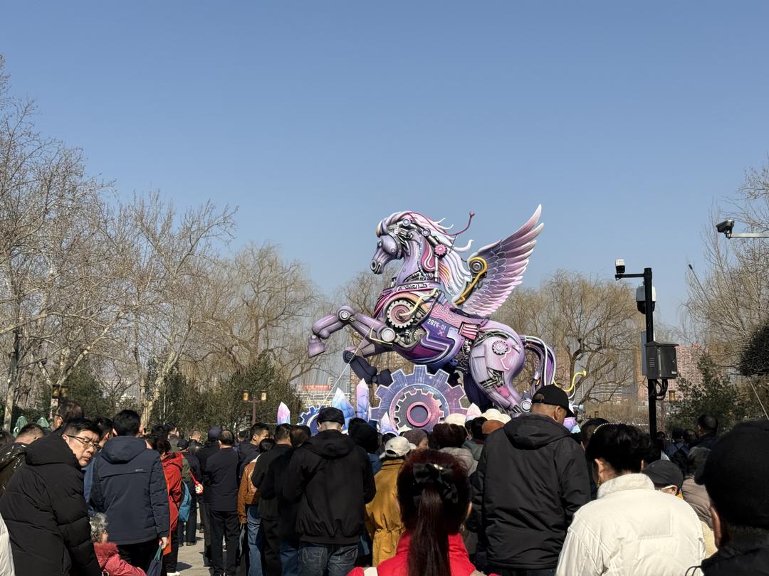 与此同时,大明湖南岸正谊广场的10米巨型花灯“马力全开”成为新热门打卡点。灯组采用赛博朋克的机械美学风格,金属机甲搭配霓虹光效,十分吸睛。