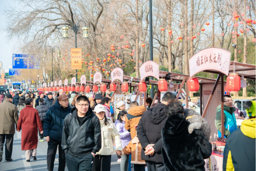 据悉,2026年明湖市集在大明湖路精心布设了60个特色展位,涵盖非遗手作、创意潮品、品牌好物三大核心业态,让传统民俗与潮流创意碰撞交融,打造活力满满的春节消费新场景。