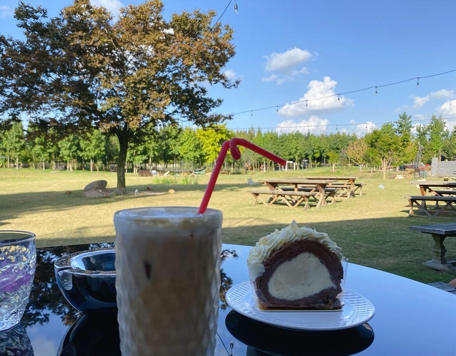 就在这片英伦复古风格的农场里,藏着一家名为“东篱咖啡” 的咖啡馆。挑一个临窗的座位,品现磨咖啡,尝美味蛋糕甜点,窗外是孩子们在草地上追逐,是小动物们在悠闲漫步,这份惬意,大概就是“采菊东篱下,悠然见南山”的现代演绎。