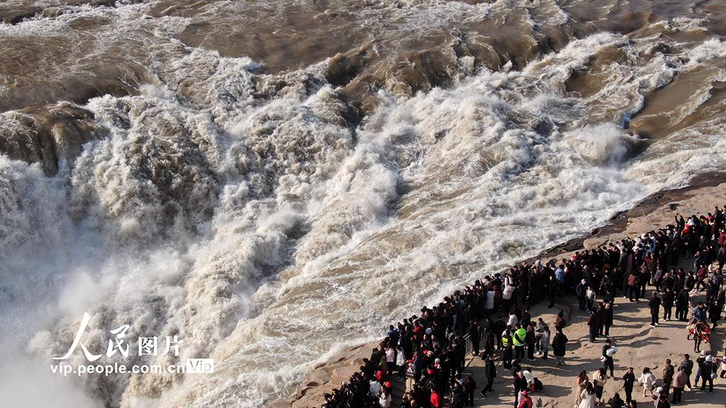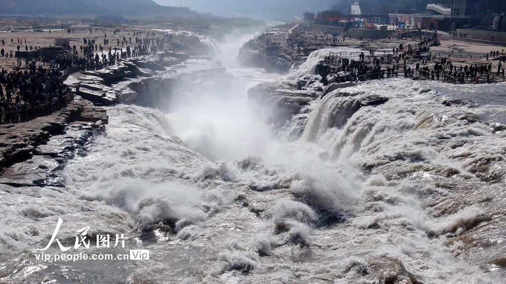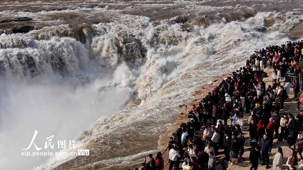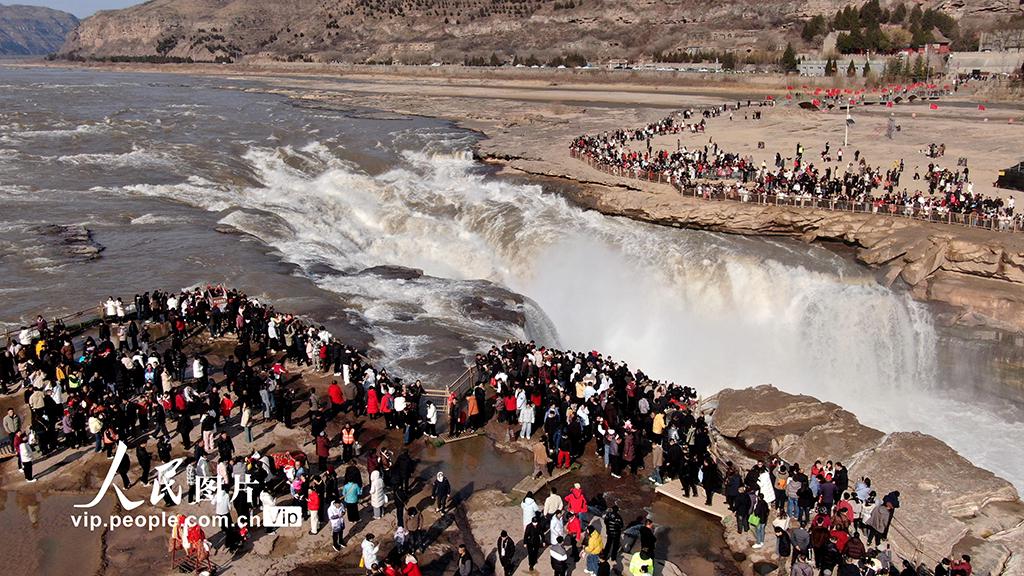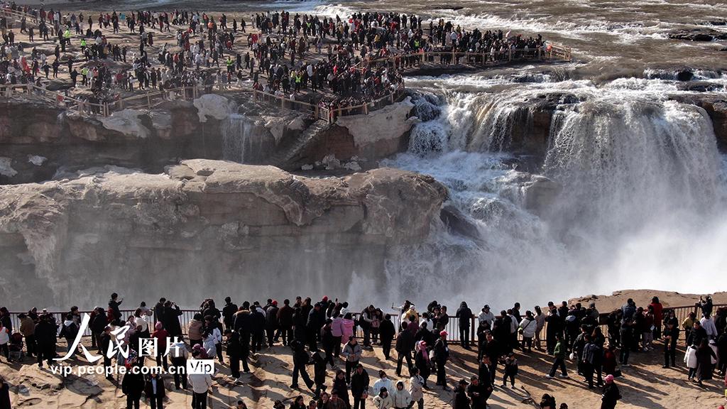 2026年2月17日,位于山西吉县与陕西宜川县交界处的黄河壶口瀑布景区游人如织。吕桂明摄(人民图片网)