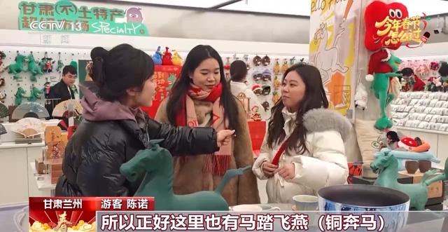 甘肃兰州 游客 陈诺 唐吉:我们先飞到新疆,从新疆坐高铁来的兰州,然后再坐高铁回重庆,因为我妈妈是属马的,今年正好是她本命年,所以正好这里也有马踏飞燕的镇馆之宝,正好在这里选一下礼物,我们刚看到一个杯子,丑萌丑萌的。