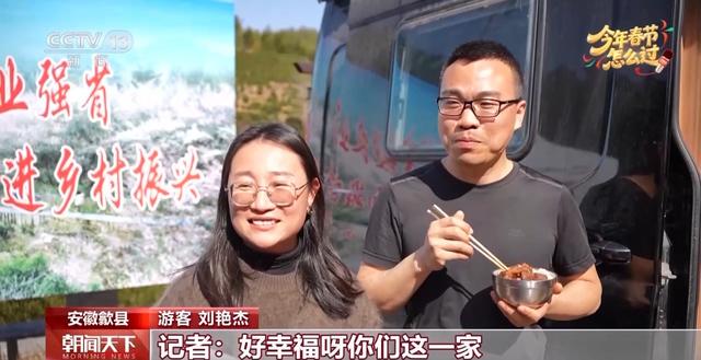 安徽歙县 游客 刘艳杰 王国栋:房车一路开过来的,出来两个礼拜了,一家人在一块儿,在哪儿都是过年。我们先到江西,再从江西来到安徽,这边景色非常好,路修得特别好,不管走到哪就特别方便。