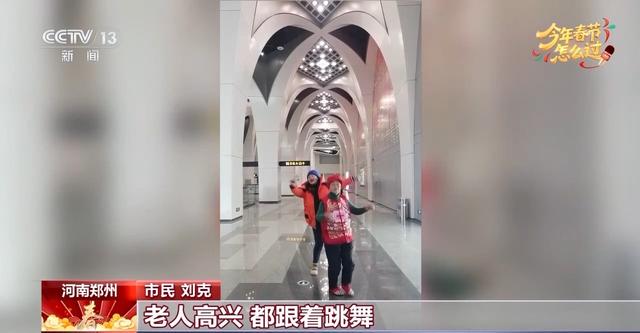 河南郑州 市民 刘克:带着老人去转地铁,哇,咱那地铁太震撼了,老人不经常出门,拍视频的时候,老人也高兴得跟着跳舞。老人八十八岁了,觉得这么大年龄了还能跳动、蹦动,还能看郑州的发展,看到这个时代的发展,真是很好。