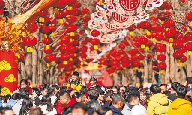 2月17日,游客在北京地坛庙会感受传统年味,喜迎新春佳节。