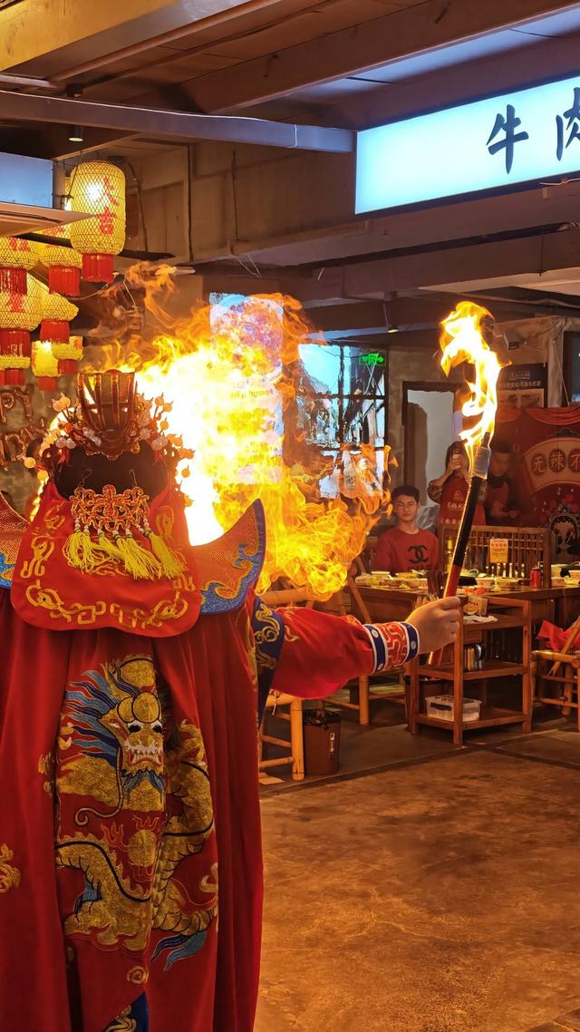 火锅店里的喷火表演。