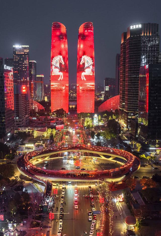 成都天府双塔春节灯光秀。图据成都高新区