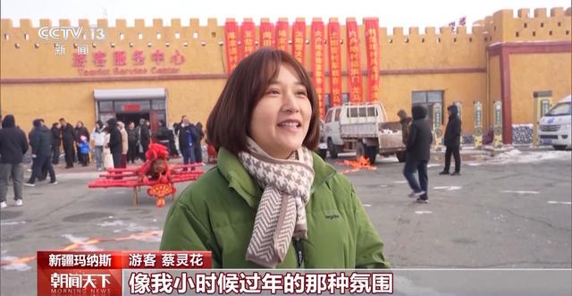游客 蔡灵花:感觉这里特别热闹,像我小时候过年的那种氛围,气氛满满,真的特别好。这里有咱们民族特色大锅饭,味道特别好。