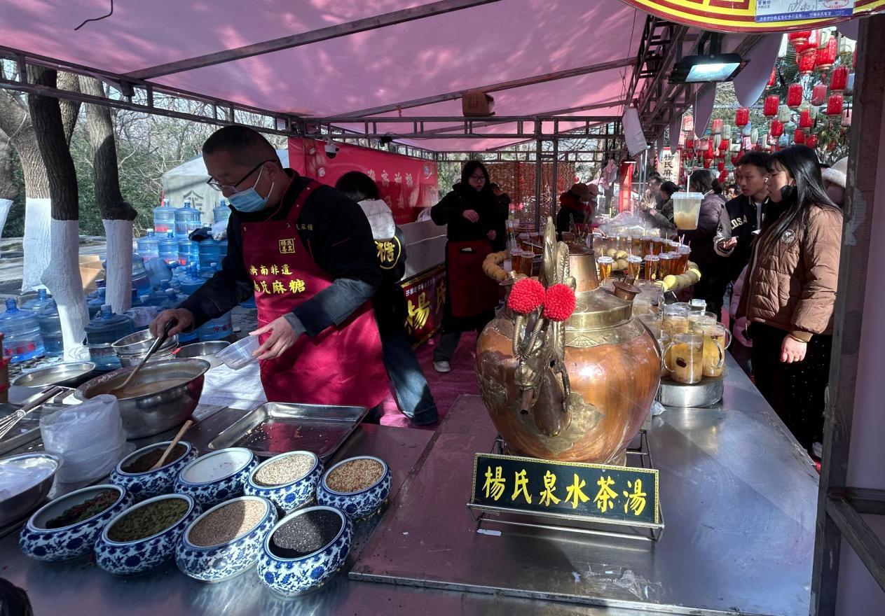 2026年济南千佛山新春游园会泉水茶汤摊位。李若楠摄