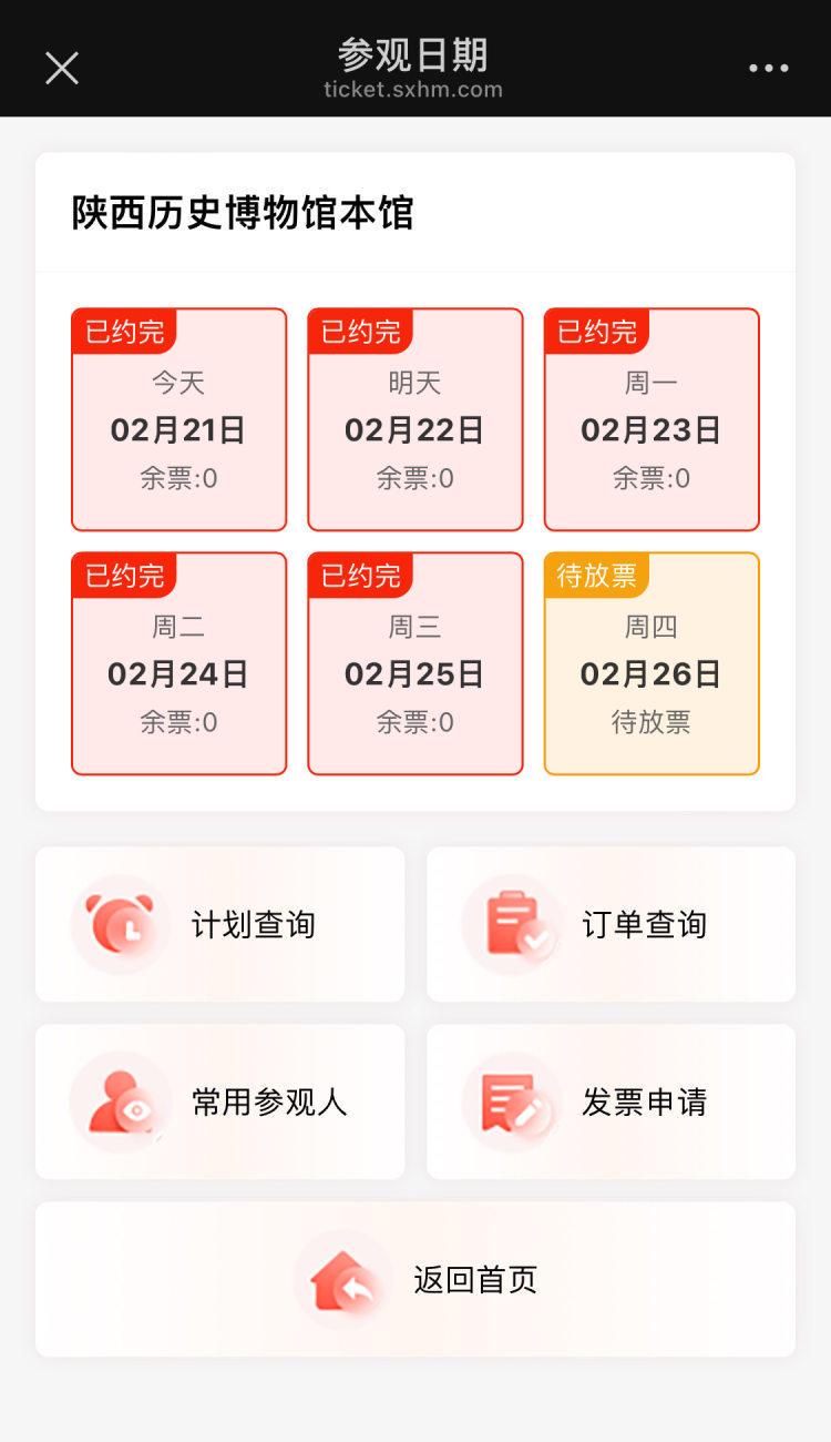 陕西历史博物馆预约票已预约满。图片来源/网络截图