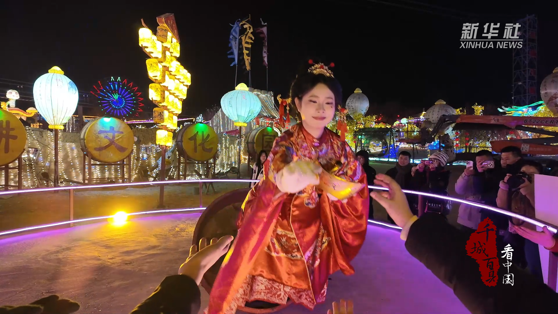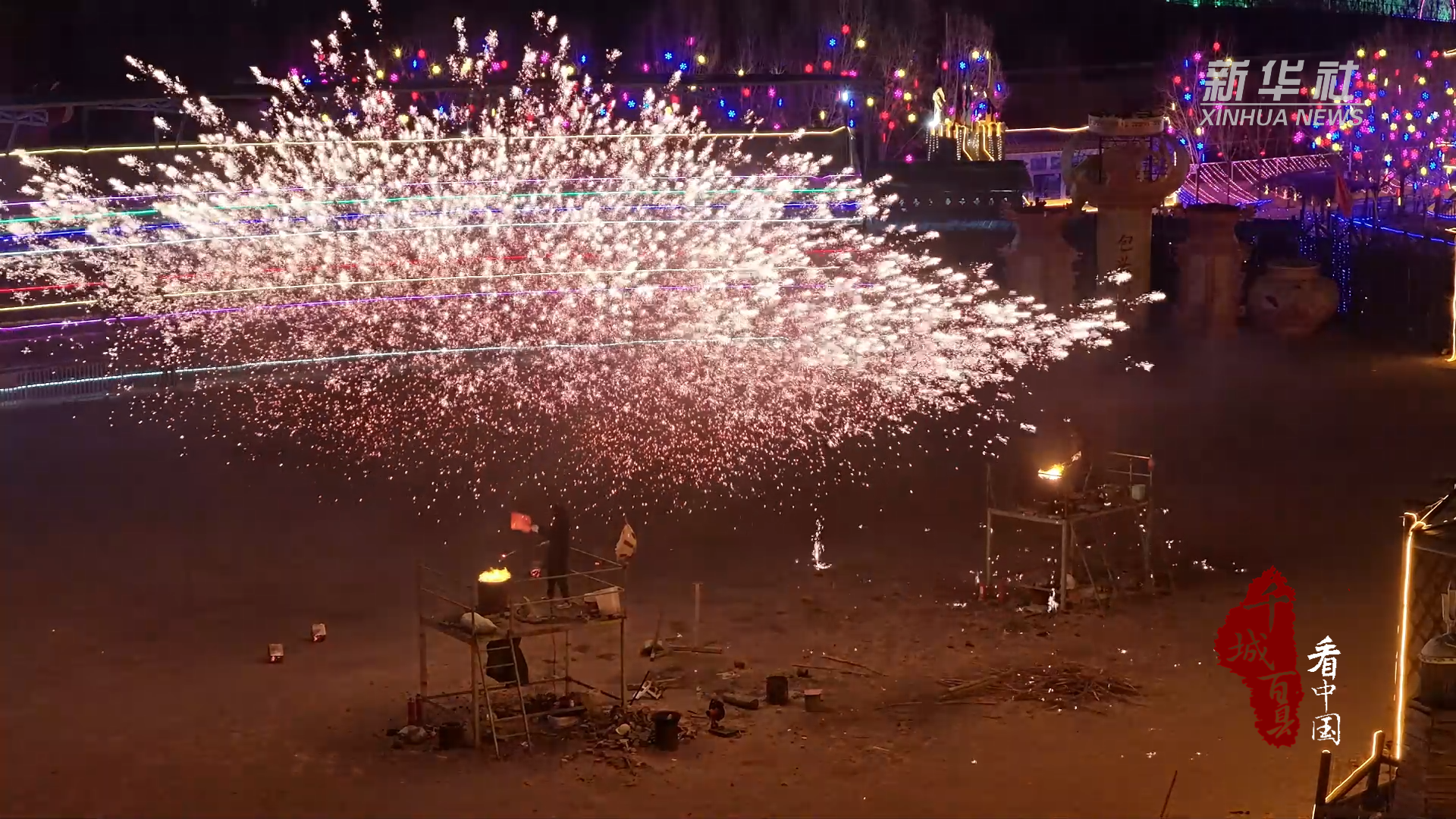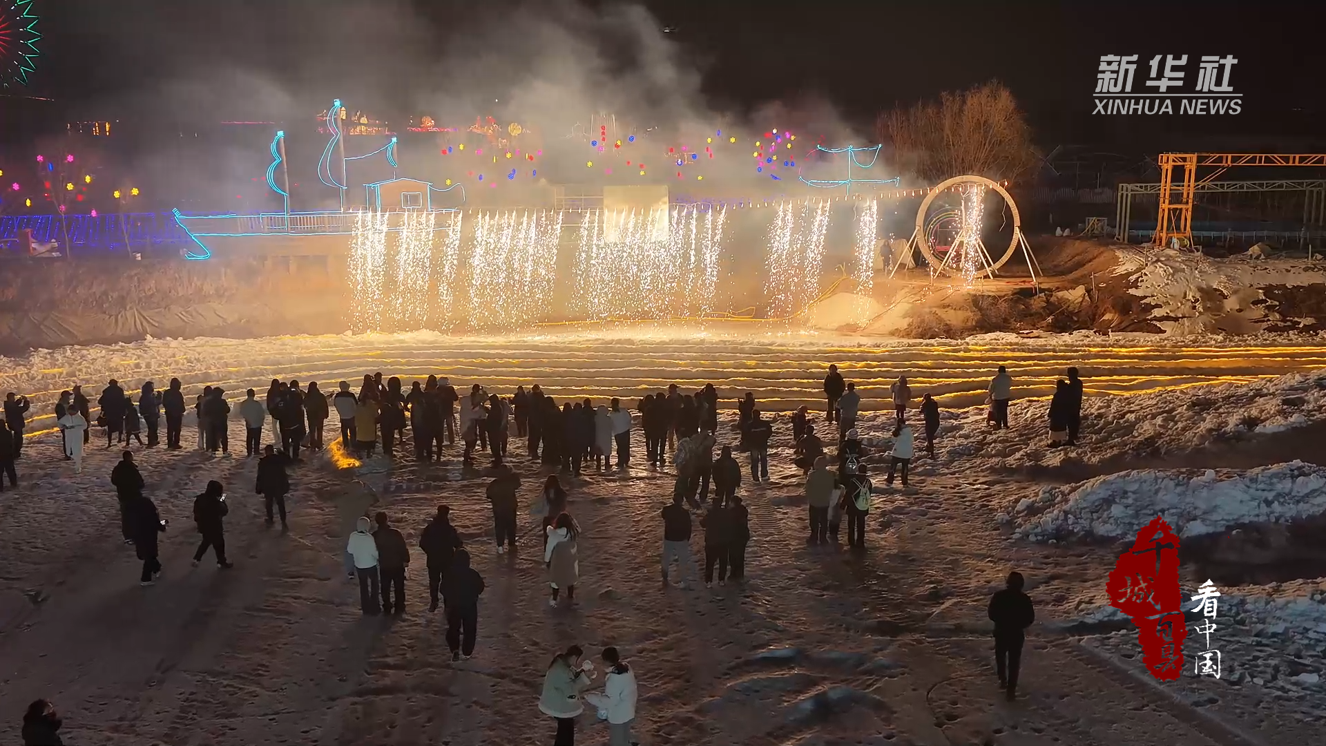 流光溢彩间,瀑布烟花与璀璨花灯交相辉映,传统文化与现代活力交融,为市民游客献上了一场红火热闹的新春盛宴。