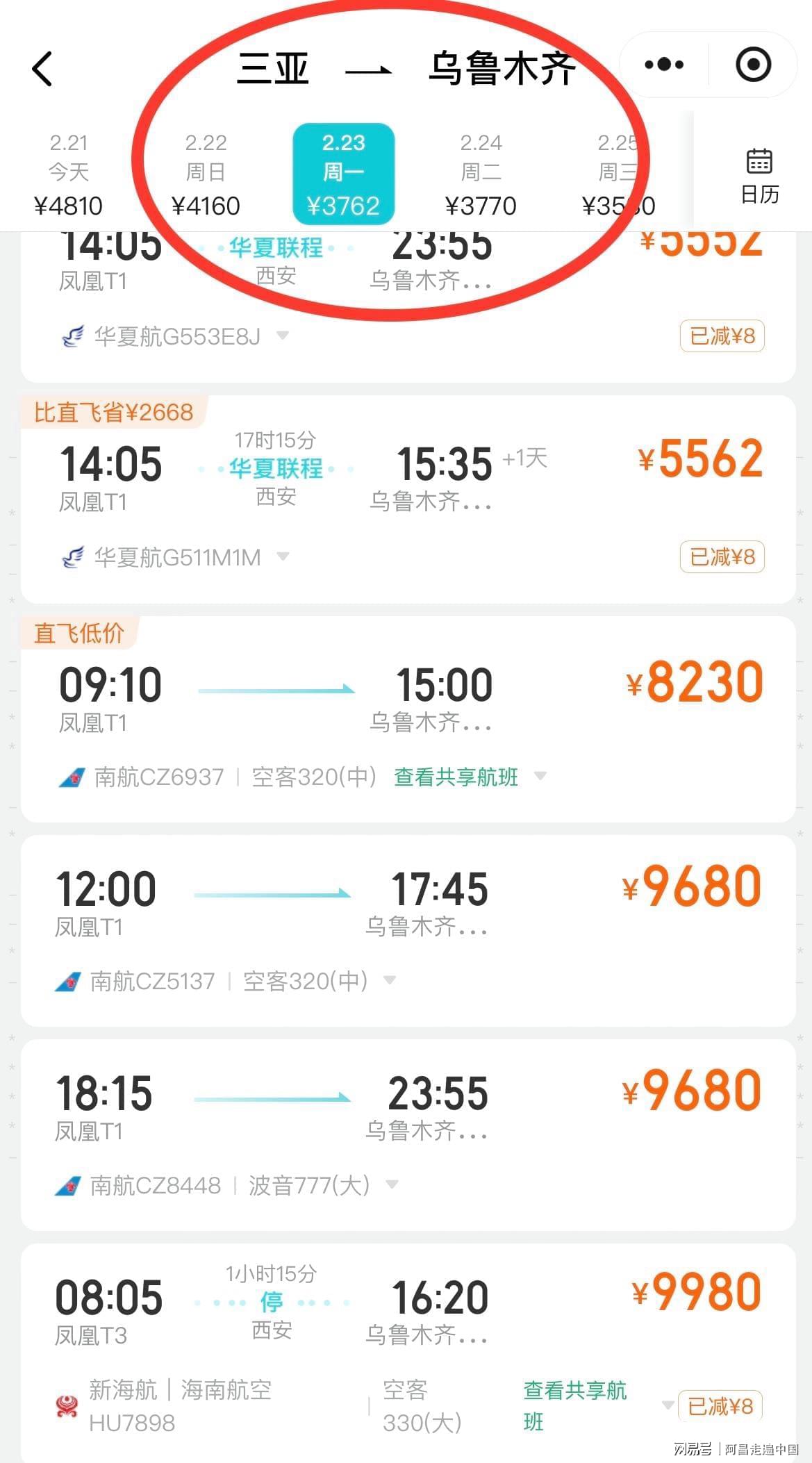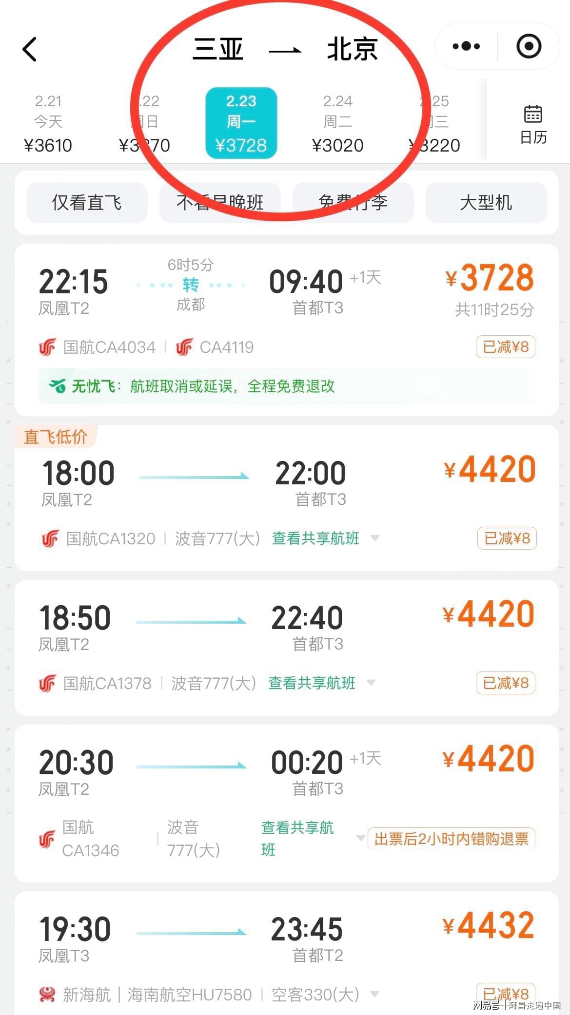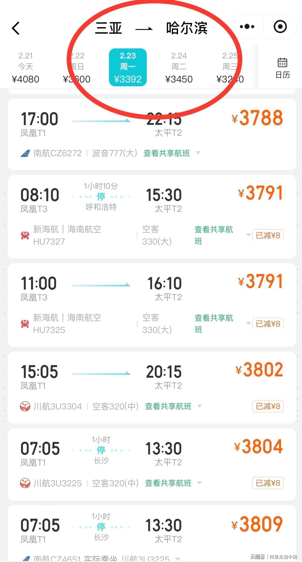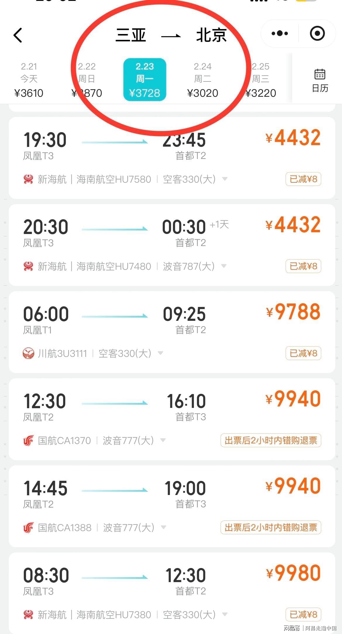 三亚、海口的机场,2月23号飞南宁,、武汉、广州,都在4000元至6000元之间。