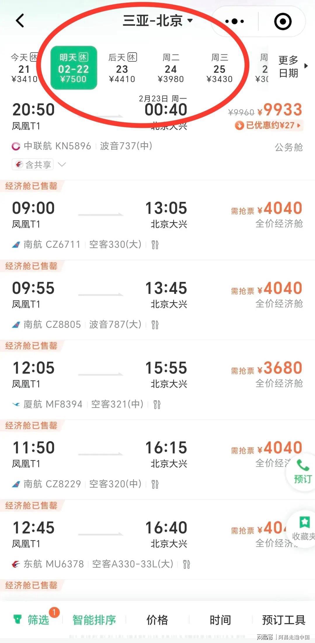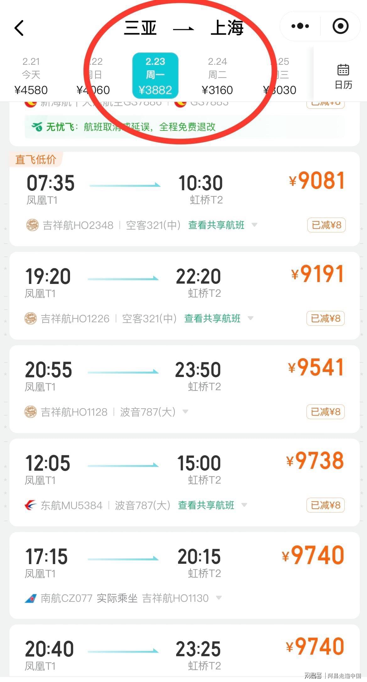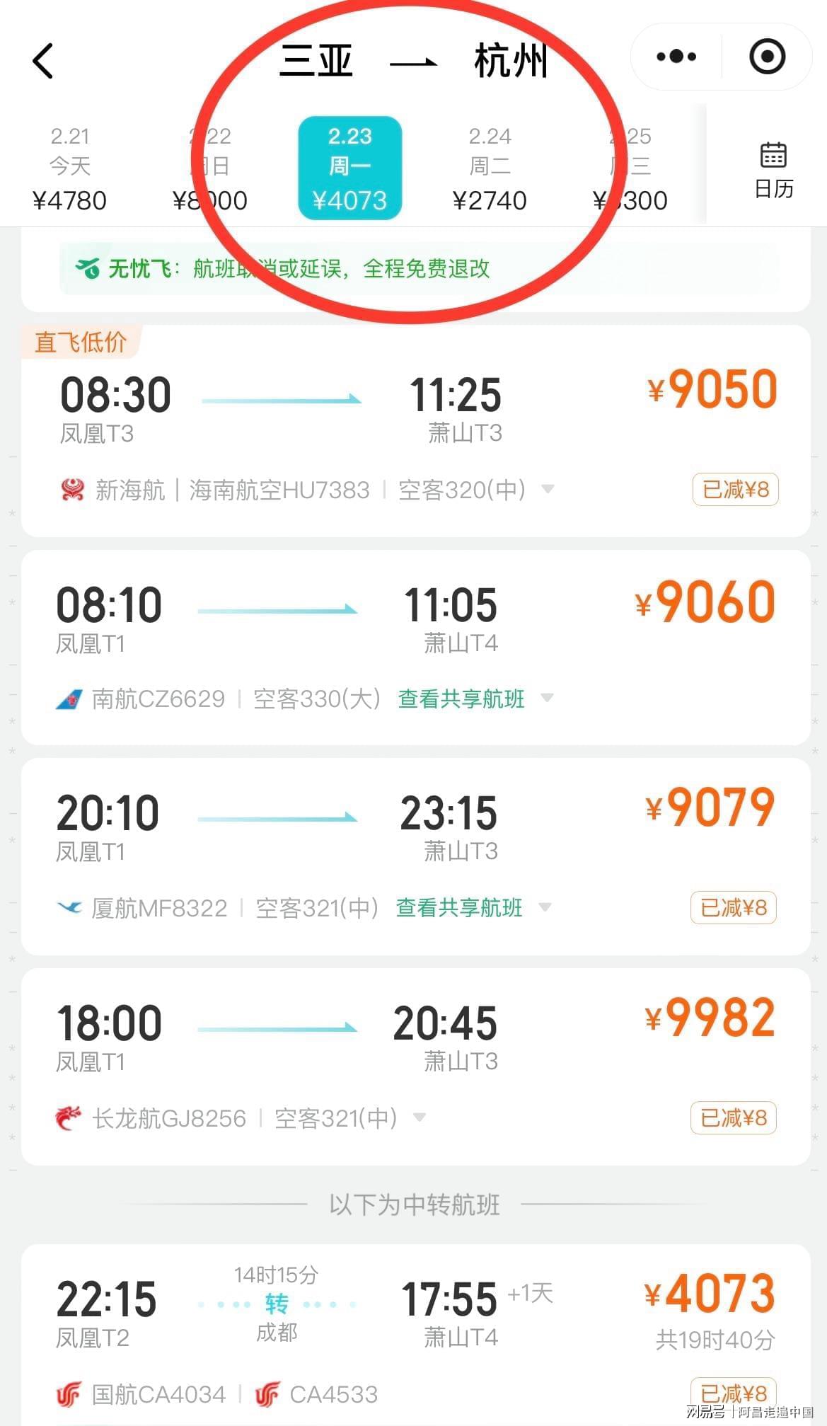 海南春节旅游进岛容易,出岛难,那就是返程机票涨价翻n倍,根据旅游热榜数据,2月22号、23号返程机票从海南三大机场任何一个机场飞往上海、北京、杭州,最便宜机票9000元、最高机票12000元,很多游客说来的时候好好的,现在回不去了,其实对于每年春节海南返程机票都是一个套路,如果去旅游时候没有买好返程机票,回来一定是天价机票,网友调侃:春节去海南三亚旅游的人都不是穷人,都是有钱人。