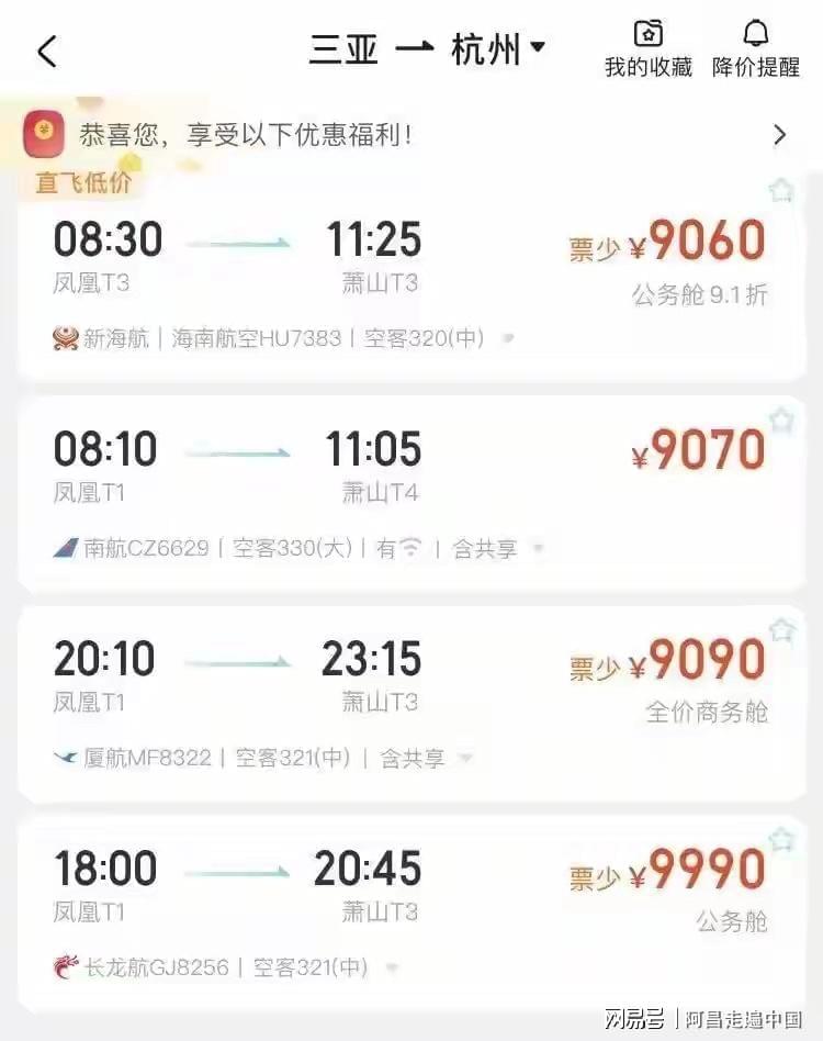 笔者通过OTA平台查询了三亚、海口机场返程机票,2月23日,从三亚飞北京、上海、杭州这些城市经济舱夜间航班三四千元,白天航班几乎在7000元至10000元左右。公务舱经济舱在10000元左右。