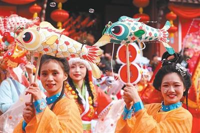 游安徽合肥市新春文化庙会的鱼灯巡游。解光文摄(影像中国)