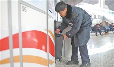 行铁路部门扩大“轻装行”服务试点范围,旅客提前预约就能享受上门取件、车站送件或站内存取、上门送达服务。这是甘肃兰州西站,工作人员将接收的旅客行李放入服务柜。新华社记者 陈 斌摄