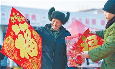 购河北石家庄市元氏县,群众在选购“福”字。张晓峰摄(影像中国)