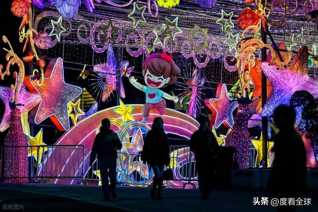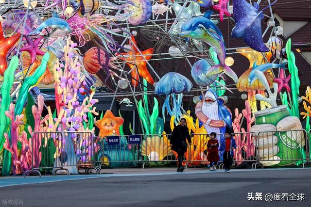 除了这些大型灯组,园区内的小型灯组也颇具特色。路边的草丛中,藏着造型可爱的海洋生物灯组,小鱼、小虾、小螃蟹栩栩如生,仿佛下一秒就要跃出草丛,融入大海;长廊两侧,挂满了红彤彤的灯笼,灯笼上印着福字、寿字,还有马年的吉祥图案,风吹过,灯笼轻轻摇曳,灯光闪烁,氛围感拉满。更值得一提的是,今年的灯会还引入了数字化编程和集成控制技术,让音乐、灯光、光影实现高度同步,当夜幕降临,灯光亮起的瞬间,配合着舒缓或激昂的音乐,整个星光大道仿佛变成了流动的星河,移步换景、光影交融,让人仿佛置身于梦幻的光影世界。