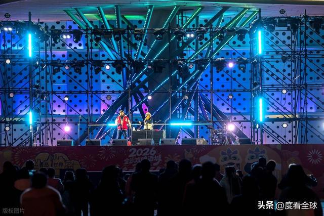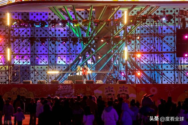 热闹不止于此,园区内的潮流玩法,更是让这场新春盛会充满了年轻化气息,吸引了大批年轻人前来打卡。中心舞台上,实力乐队、人气DJ轮番炸场,动感的音乐、激昂的旋律,点燃了整个冬夜的热情,游人围在舞台周围,跟着音乐的节奏摇摆、欢呼,释放着心中的喜悦,不少年轻人举起双手,跟着歌手一起合唱,现场氛围热烈到顶点。