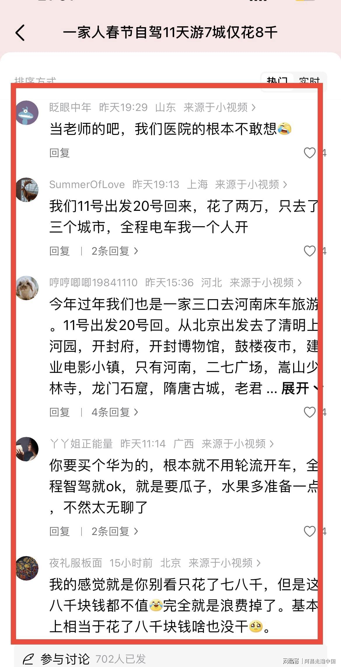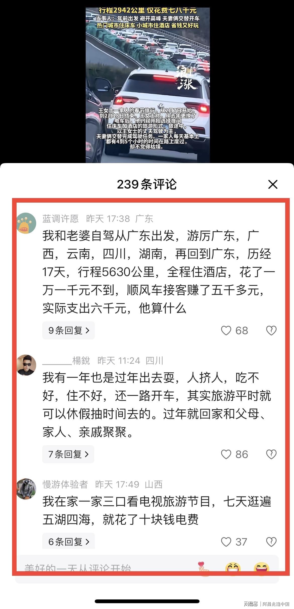 看到杭州一家三口省钱攻略,网友纷纷晒出自己春节自驾游省钱攻略大pk: