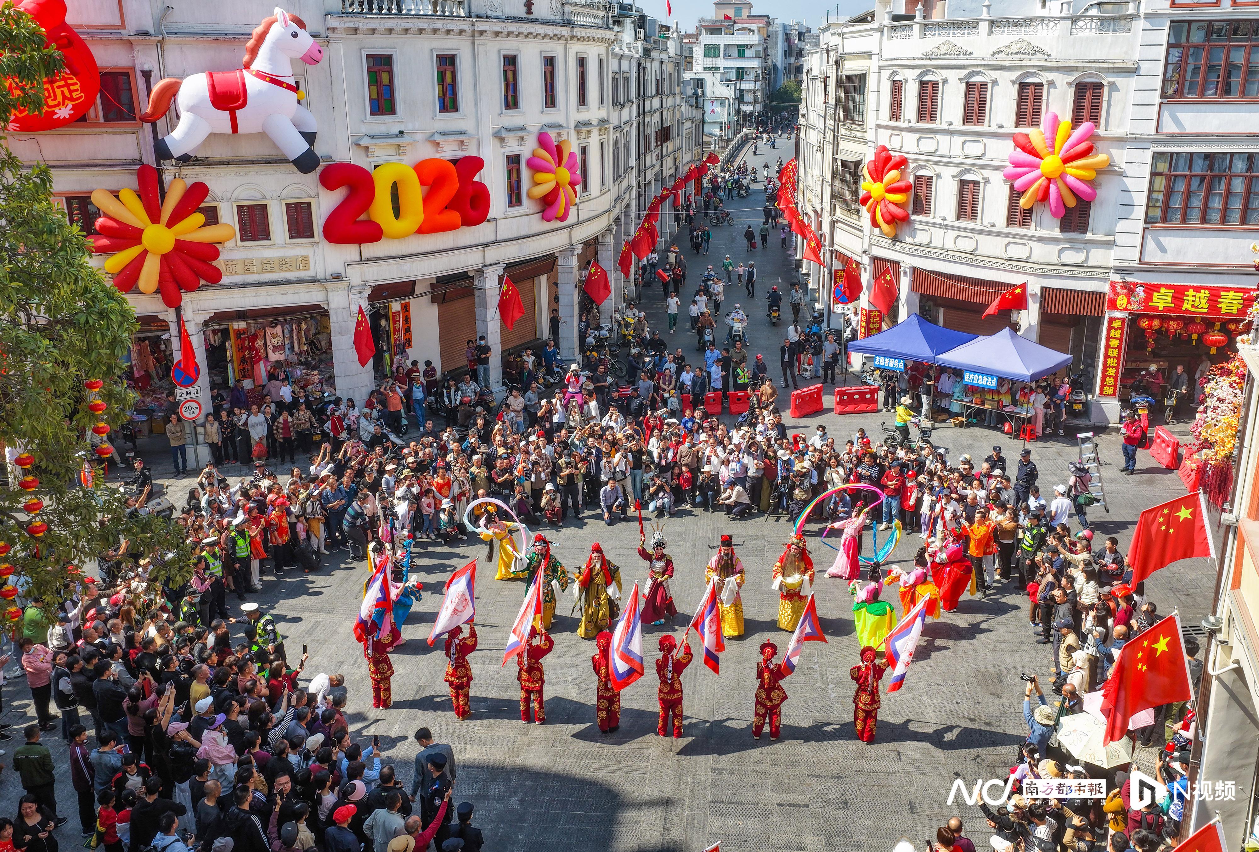 2026阳江春节民俗巡游展演在市区南恩路启幕,现场热闹非凡。