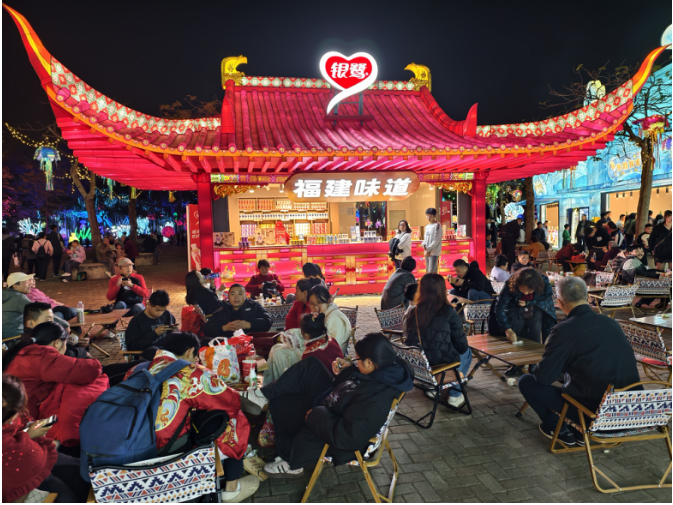 从供给结构来看,本届厦门园博苑灯会已形成“观灯+演艺+市集+互动”的综合体系。游客无需频繁更换场景,即可在厦门园博苑灯会园区内完成观赏、体验与消费等多重需求。