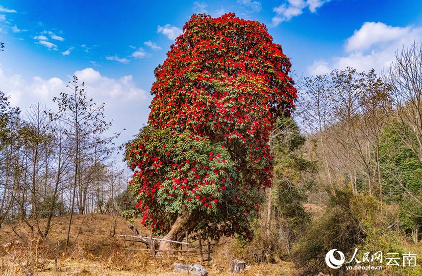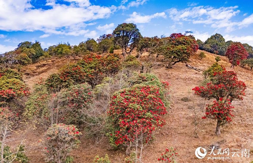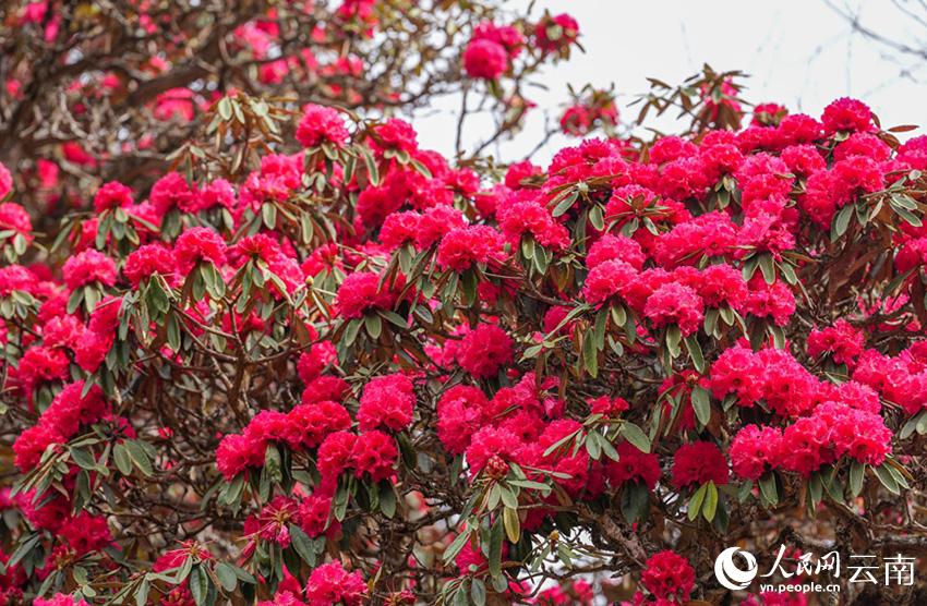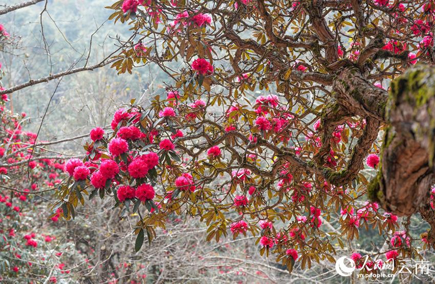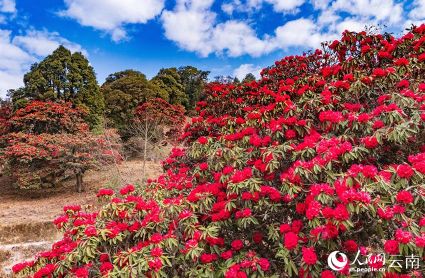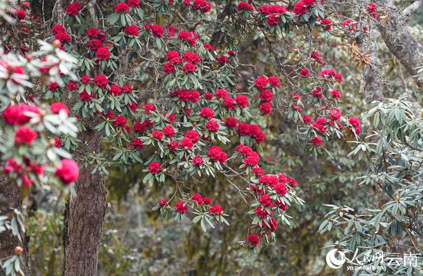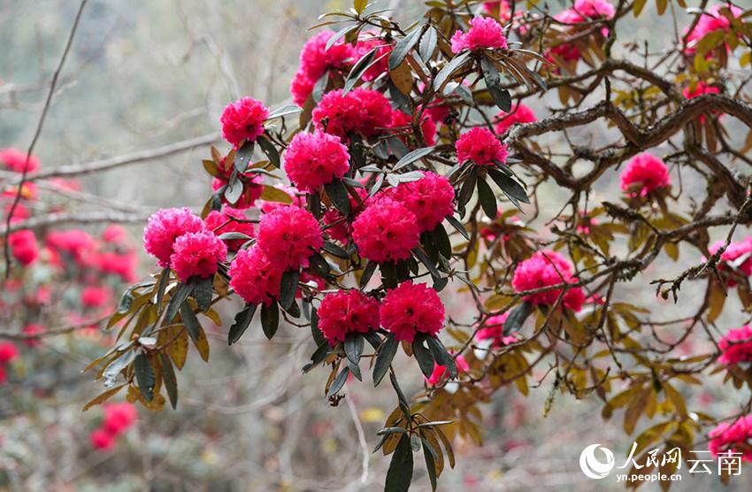 云南省漾濞县富恒乡石竹村的杜鹃花进入盛花期。人民网记者 虎遵会摄