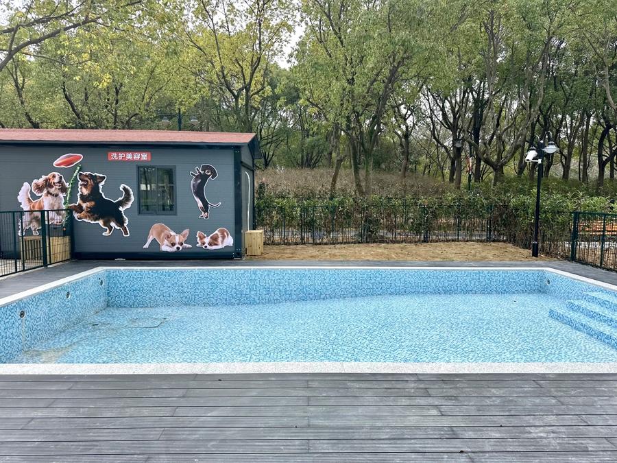 令人期待的是,乐园内还有一个宠物专属泳池,将于今年5月开放,届时将成为“毛孩子”的夏日快乐源泉。泳池设计为斜坡式深浅双区,浅水嬉戏区适合初次下水的小萌宠,深水游泳区则能满足游泳健将的探索欲。