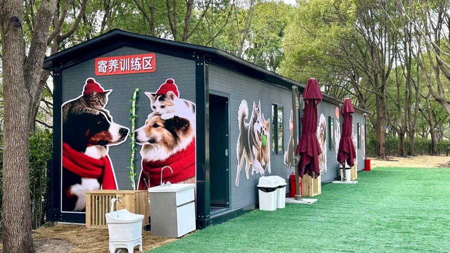 同时,园内还开设了宠物洗护美容和寄养服务。新民晚报记者看到,寄养区有21间“酒店式”犬舍房间,每间中都有餐具和地垫,派专人定时喂食,还有超大空间供宠物撒欢和互动。房内还有24小时监控摄像头,宠物主人出差或旅游时也能通过手机看到爱宠的日常。