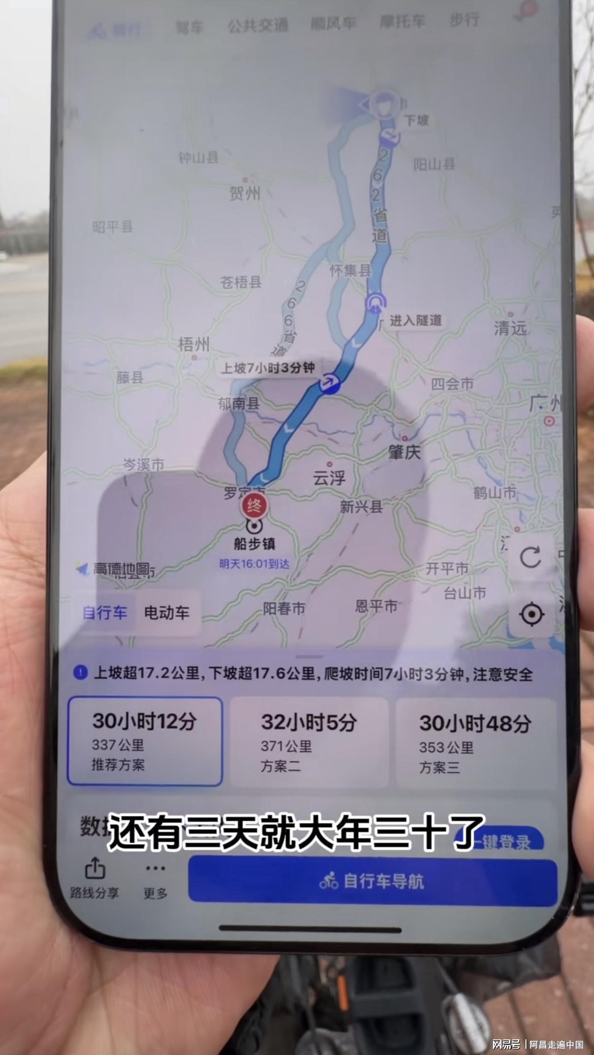 从湖南到广东,一路阴雨绵绵,骑行七天才看到太阳,这趟骑行距离和家人团圆饭还有300公里,最终蓝战非还差一百多公里才到家,赶不上年夜饭,叫车他说可能会被笑话,但是不让妈妈自己一个人吃年夜饭,那就放下面子叫货拉拉,叫了一辆货拉拉把自行车拉到距离家20公里,骑行最后20公里到家,因为那是和老妈约好的年夜饭。