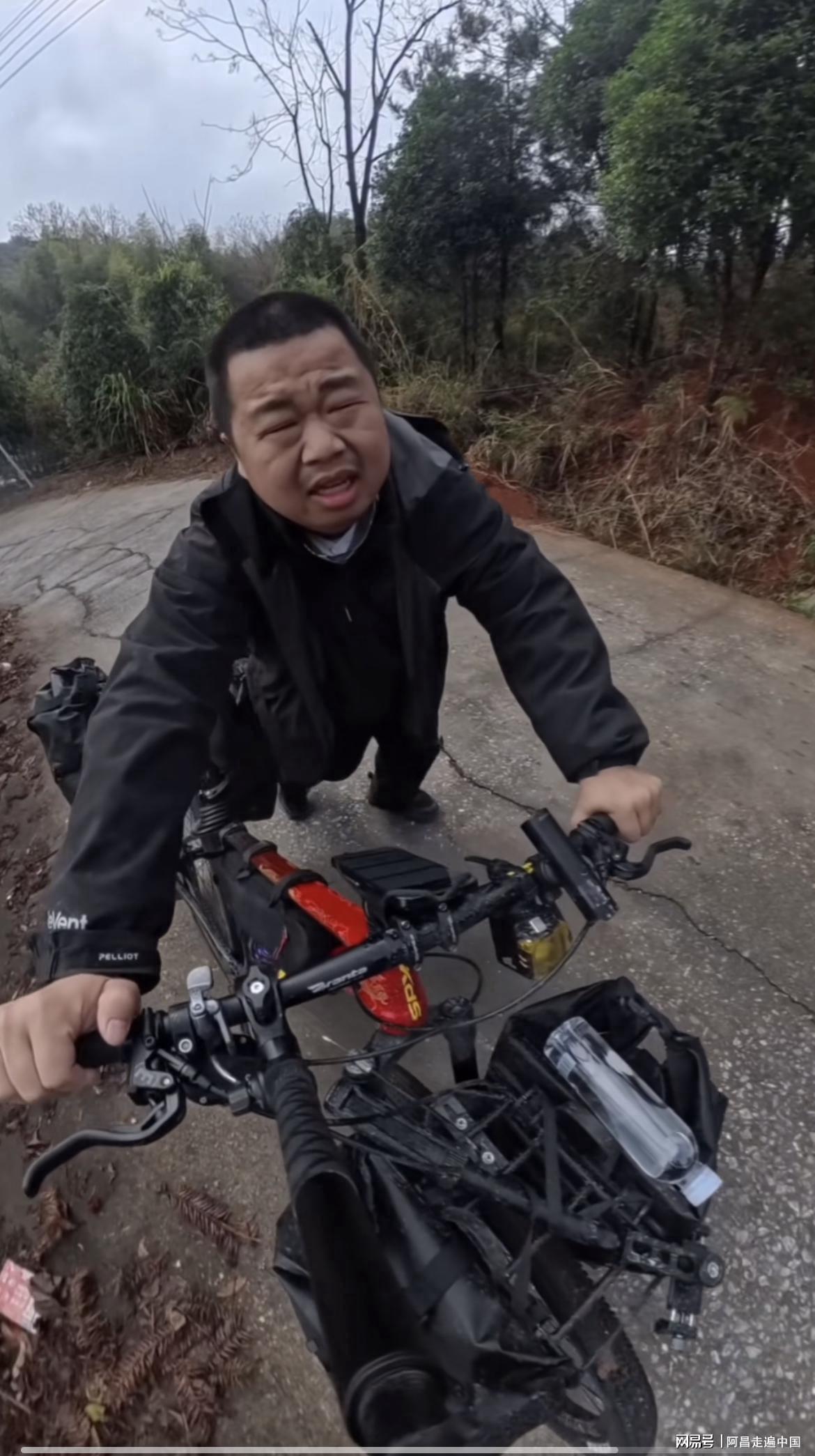 从郴州骑到广东连州,一路上坡,骑行16个小时到晚上12点,一天14小时在推车,他说怪不得古代把文人发配到岭南,走着走着就嘎了,是有道理的,蓝战非骑行用力推车过度,手肿了,在广东连州躺了两天才缓过来,连州休息好了继续出发。