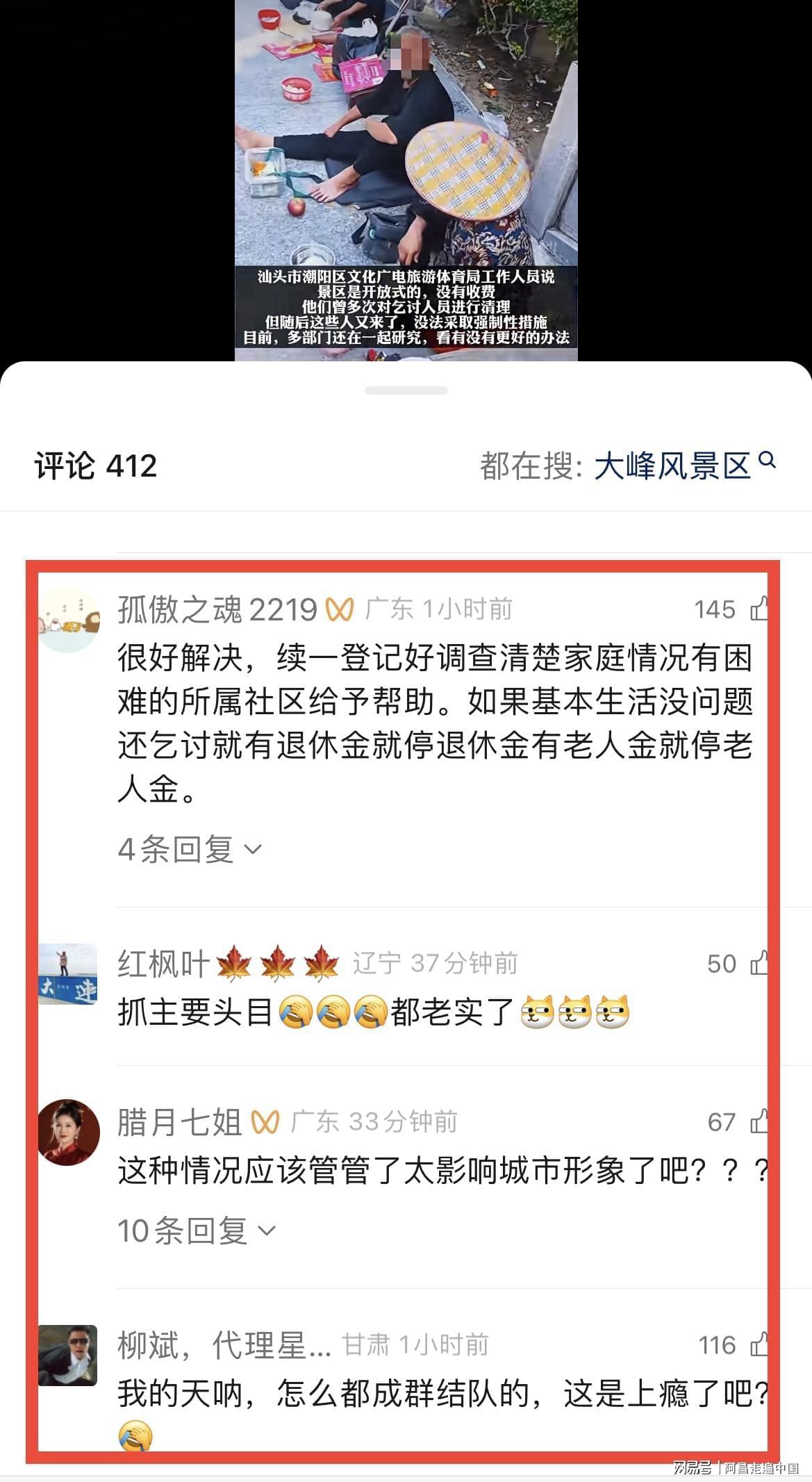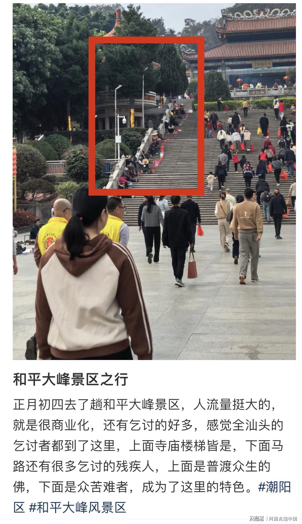 然而汕头潮阳区文旅回应,他们面对这个事情也很头疼,这些乞讨者前脚赶走,后脚马上又来乞讨了,景区免费开放,对于乞讨者只能劝导不能强制赶,目前文旅和景区在商议看有没有什么办法能劝走。
