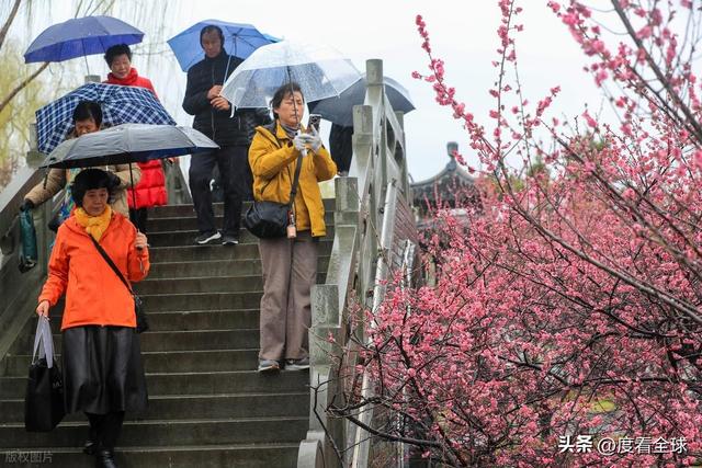 穿行在春雨梅林里,每一位游人的脸上,都带着松弛的笑意。来自南京的一家人,扶老携幼,慢慢走着,老人拄着拐杖,在梅树下驻足,眼神温柔,仿佛在回忆过往的岁月;孩子蹦蹦跳跳,伸手去触碰花瓣上的雨珠,清脆的笑声在梅林间回荡;年轻的情侣并肩而行,撑着一把雨伞,低声说着悄悄话,梅花的芬芳,成了他们爱情最浪漫的见证。一位来自上海的游客,背着相机,穿梭在梅林的每一个角落,他说,自己每年都会来瘦西湖赏梅,但今年的春雨梅景,格外动人,“雨水让梅花更显鲜活,也让这片梅林多了几分诗意,这种自然与人文的交融,是其他地方很难感受到的。”