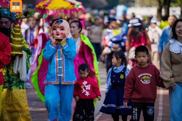 本届樱花节由“启幕仪式+樱潮游园会+赶街集市+百姓开放舞台+樱潮主题互动”五大板块组成。一场充满老昆明民俗风情的“五福”踩街巡游率先开场,传统花灯、板凳龙、舞狮、高跷、大头娃娃、蚌精等表演队伍沿公园主干道环线巡游,与市民游客亲密互动。主舞台不间断、精彩的文艺演出吸引了广大游客和市民驻足观看。