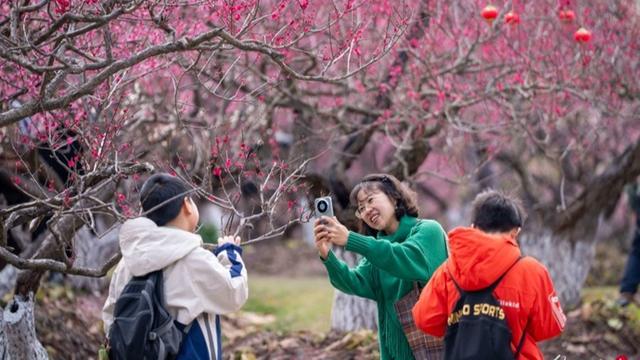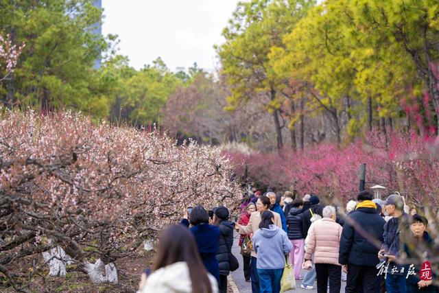 园方介绍,伴随近期气温稳步回升,晚梅代表品种美人梅预计于3月中上旬全面盛放。美人梅花色粉嫩柔润,形似少女娇颜,花期较普通梅花延后约15天,恰好填补早梅凋谢后的赏花空白,让春日梅景接续不断。如今,新引进的百年珍稀梅树与园内4000余株原有梅花相映成画,形成多层级、多品类的沉浸式赏梅景观,游客漫步其间,可尽享“一步一景、移步换香”的游园乐趣。