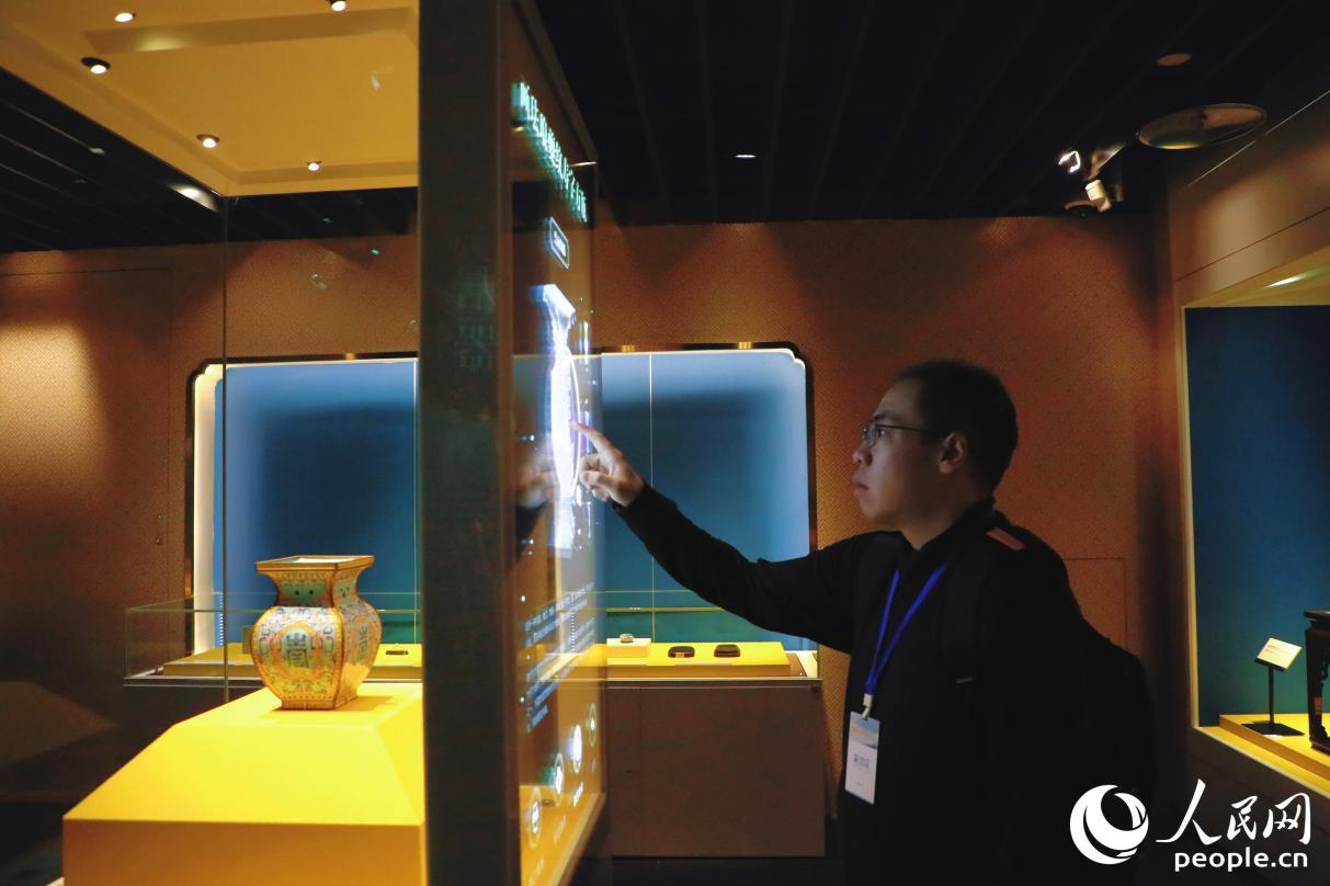 游客在馆内通过互动屏了解文物知识。人民网记者 李唯一摄