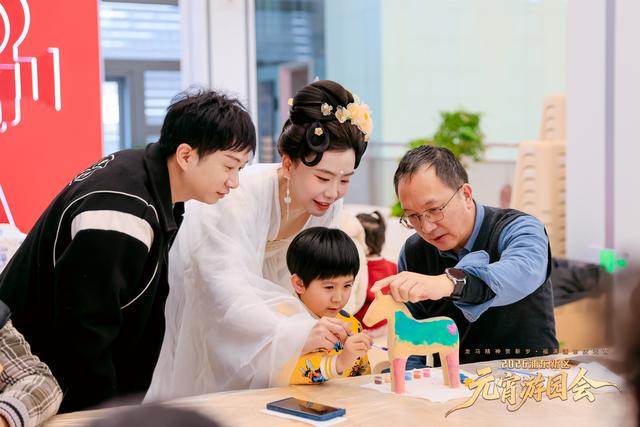 琳琅的灯谜墙前,三三两两地站着沉浸于“斗智斗勇”的家长与孩子们,在字里行间探讨着汉字的博大精深,时不时有喊着“我知道了”的小朋友迅速飞奔至答题区兴奋地一展身手。而分布于中心各处的游艺体验、非遗手作前,更是人头攒动,一盏盏元宵小马灯、一张张非遗剪纸,一碗碗手作汤圆,在大家的巧手下新鲜出炉。